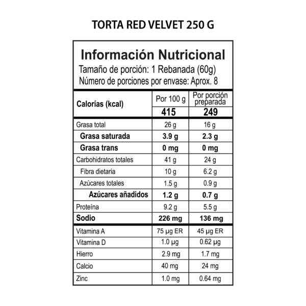 Sumérgete en la magia de la Torta Red Velvet con nuestra mezcla premium, presentada en un práctico empaque listo para usar. Su vibrante color rojo, logrado con colorante Rojo No 40 de grado alimenticio, convertirá cualquier celebración en un espectáculo visual que enamora desde el primer instante.